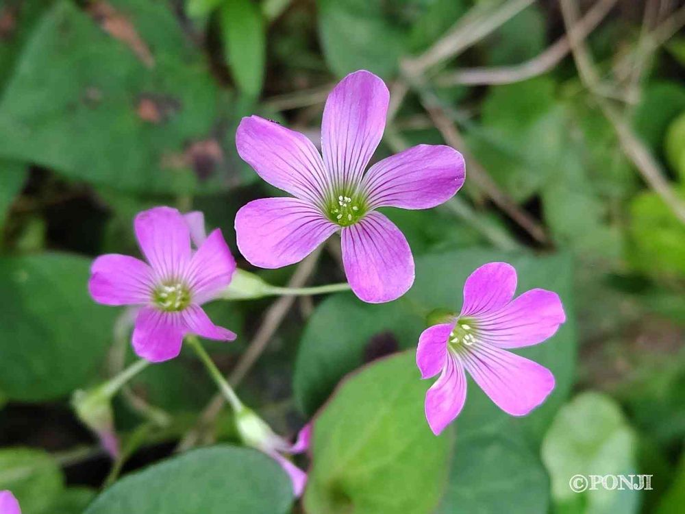 庭の外れに咲くムラサキカタバミも元気✊‼️元気😆👍️