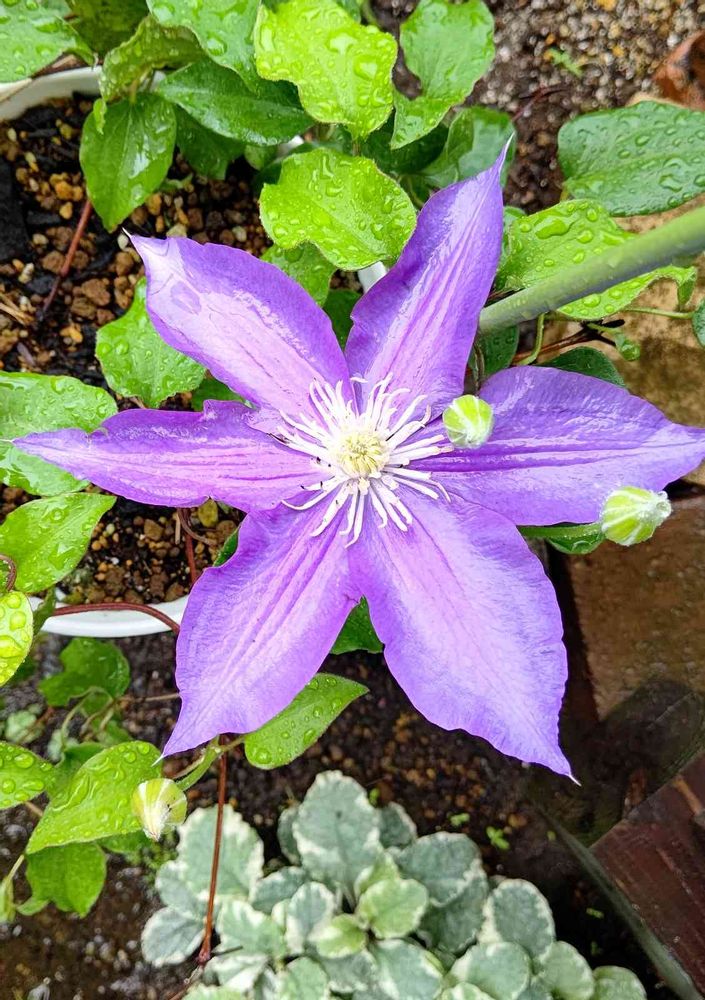 弱った葉をカットして様子を見てたら元気な葉を付け良い芽が伸びで大きな花を咲かせてくれました💜