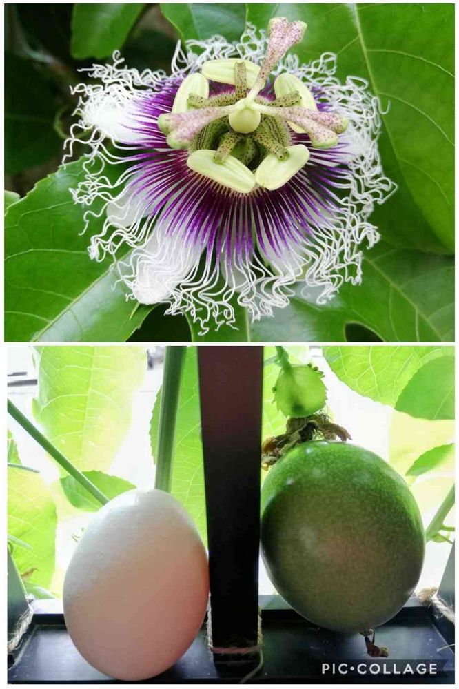 💡最初辺りに結実したパッションフルーツの実と卵🥚M寸と並べてみました😋💕