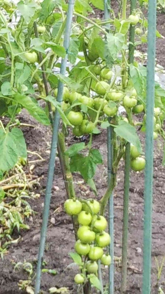 中玉とまと、下の方の葉が黄色く枯れていたので、全て取り除きました。よくみると、とまとに穴が空いて中に虫が‼️大変😖