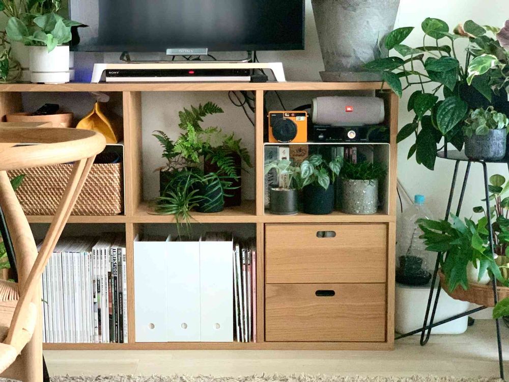背の高い棚にもマッチ!お部屋に個性を出すならゴムの木を飾ろう