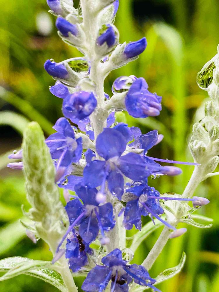 シルバーリーフそしてブルーパープル色の小さな花がたくさん集まって咲き、下から上へ登るよに咲くので長く楽しめます💕
