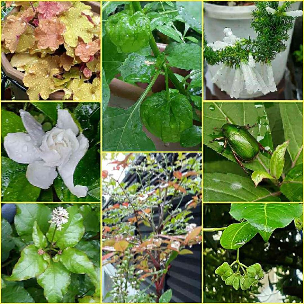 いつも見て下さって有り難うございます💐☔シャワーを浴びた植物は元気に見えますよね。でも、長雨に弱い子たちがそろそろ心配😥ハイビスカスなんかは蕾が2つ、落ちてしまいました。軒下に入れないとダメだったかな💦