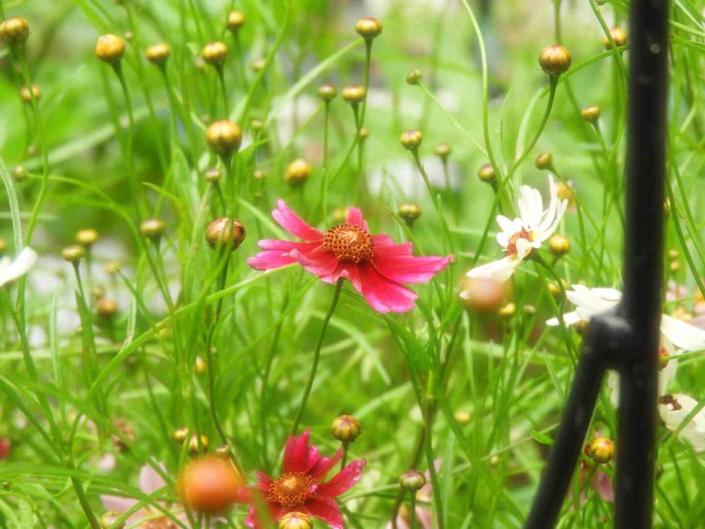 細い茎に小さな花ですが、咲き揃うと色とりどりで賑やか✨