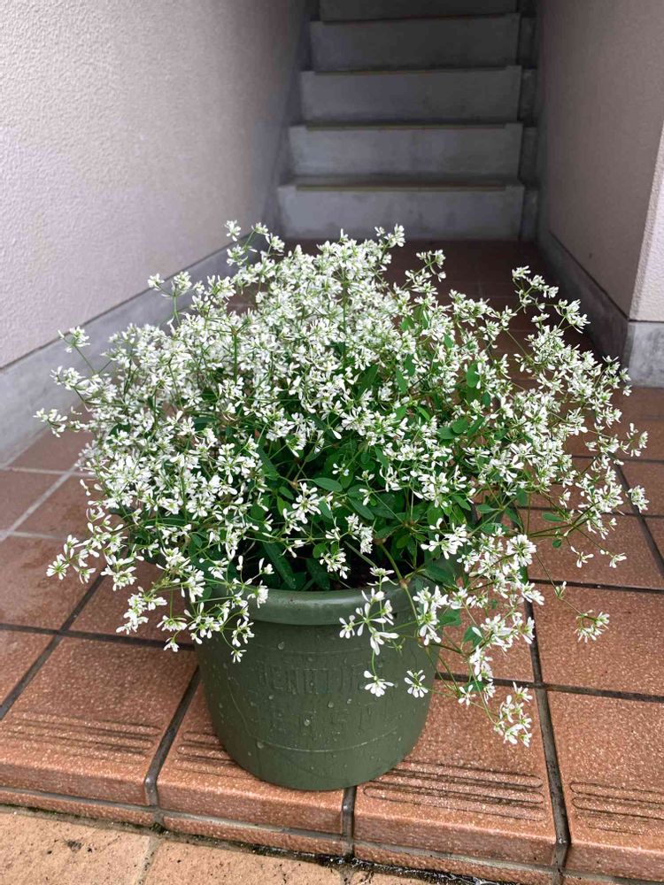 PWさんで当選した、ユーフォルビア ダイアモンドスノー 6月6日に投稿してから、花が増えてモリモリしてきました。この後少しはみだした所をカットしてスッキリしました。