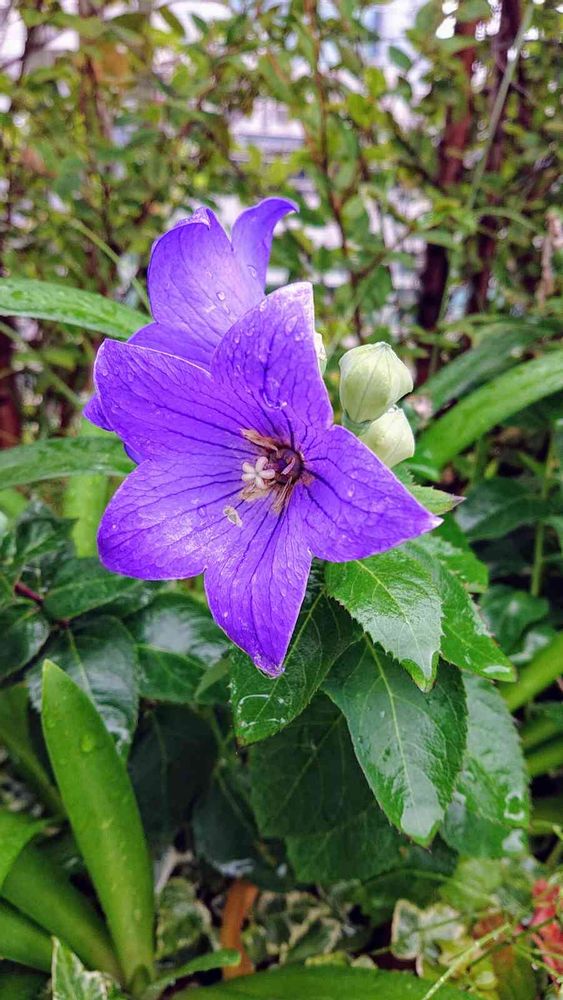 雨に濡れた桔梗、紫色が一段と鮮やか 🙌🏻
