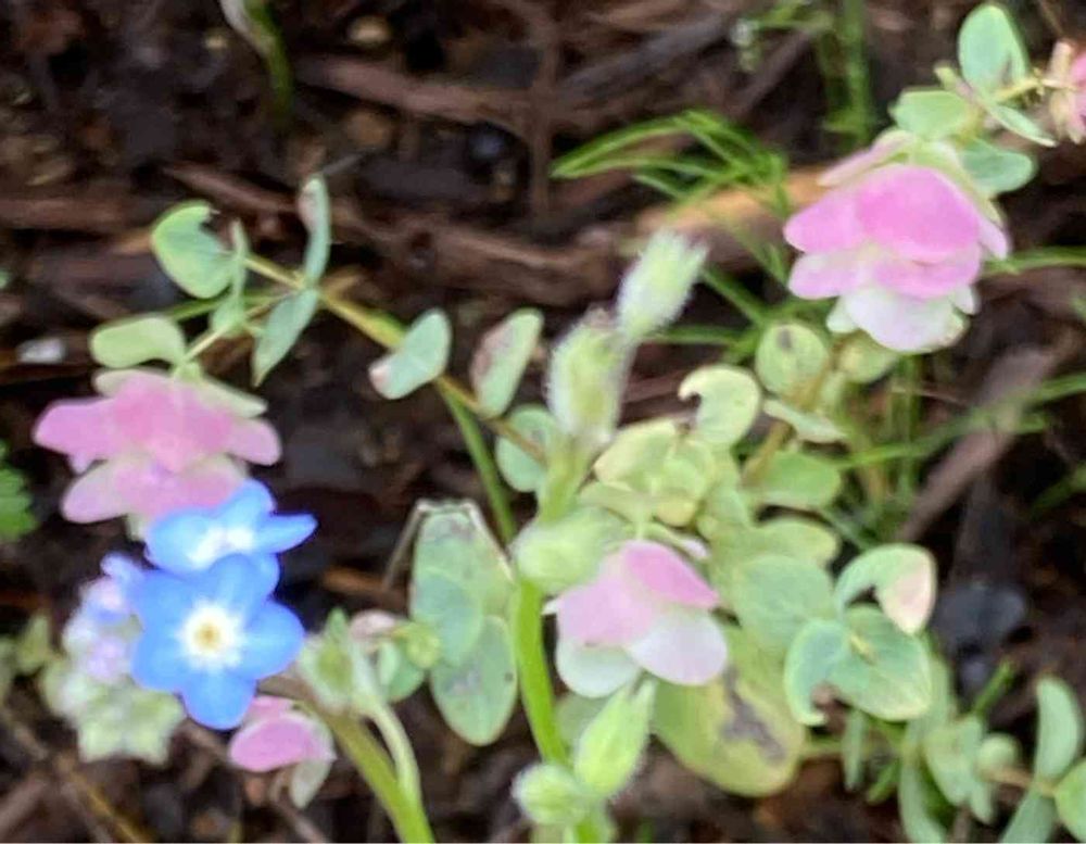 オレガノ・ユノと勿忘草 勿忘草がまた残ってました〜