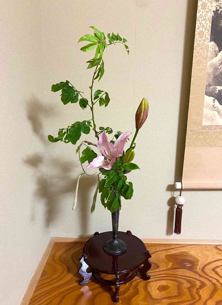 そんな葉っぱがわさわさの藤を整理して涼しくして、実をポイントにして育てた百合と合わせてみました