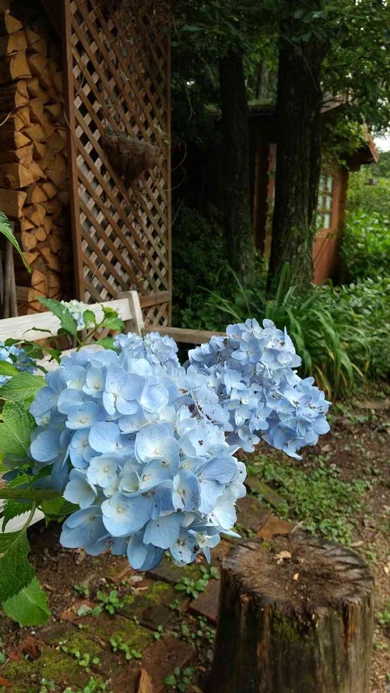 薪小屋の横の紫陽花も良い色です🌼😊🎵