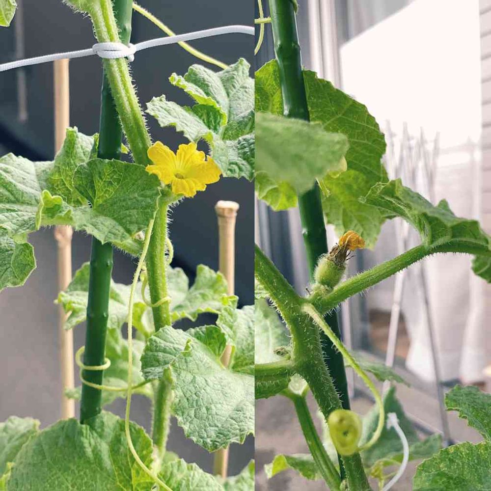 メロンの雄花と雌花のタイミングが合わない…😭下から何となく葉っぱが元気なくなってきているのに…。