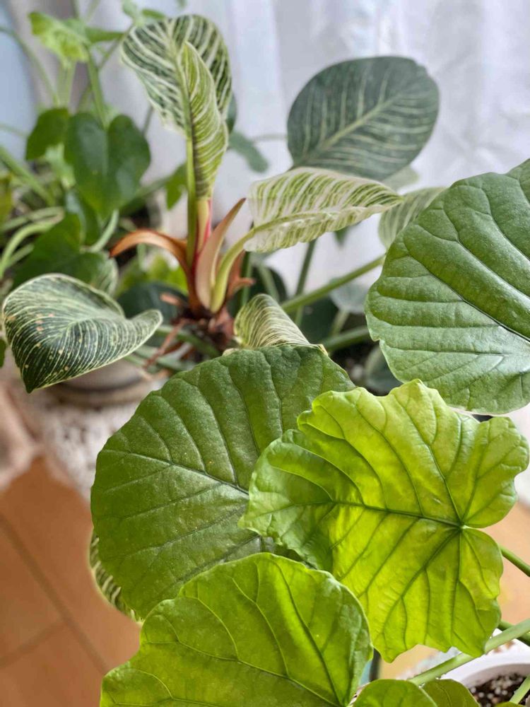 おはようございます🌱植え替えしたら、綺麗な縞模様の葉がでるようになってきました( ˘͈ ᵕ ˘͈ )❤︎ ハート型の大きな葉が可愛い、ウンベラータもすくすく成長中(*˙꒳˙*)‧⁺✧︎*