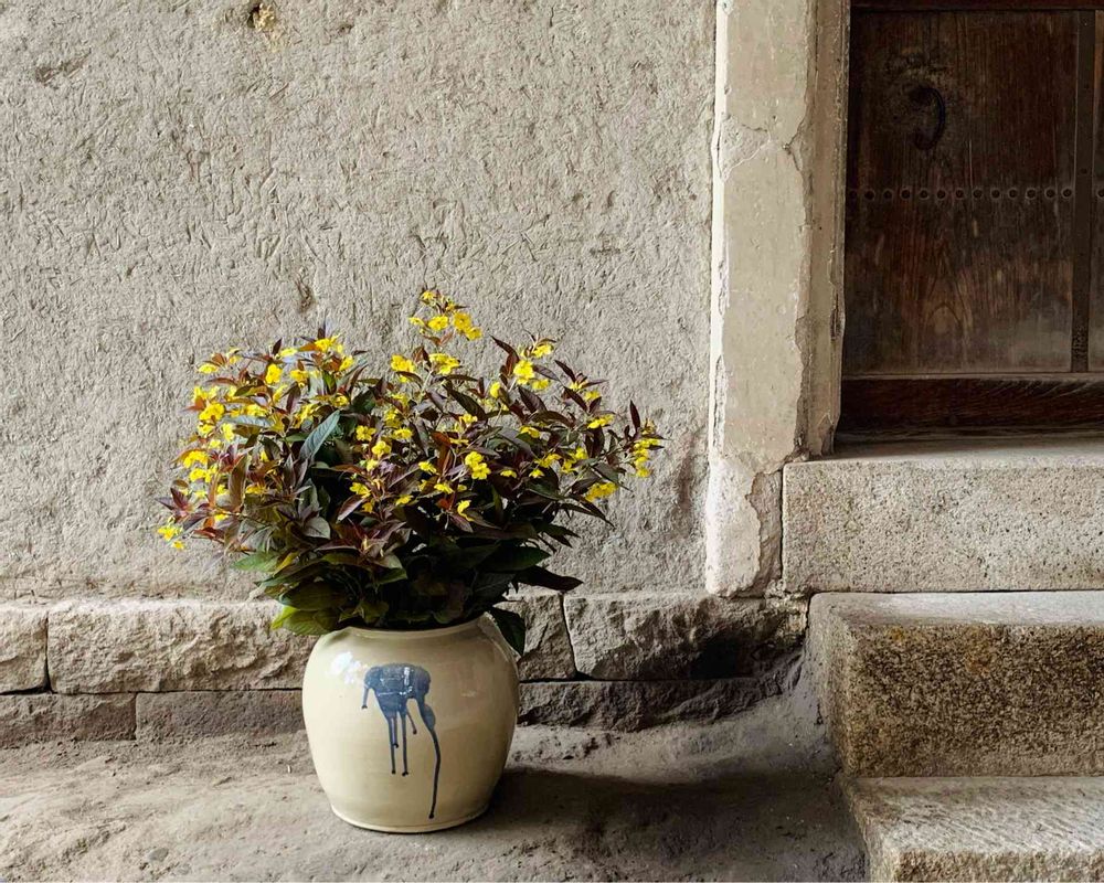 隅々まで 綺麗に 掃かれた 蔵前の土間に シックな花瓶と共に リシマキアが よく映えてますね❤️⤴️🤗