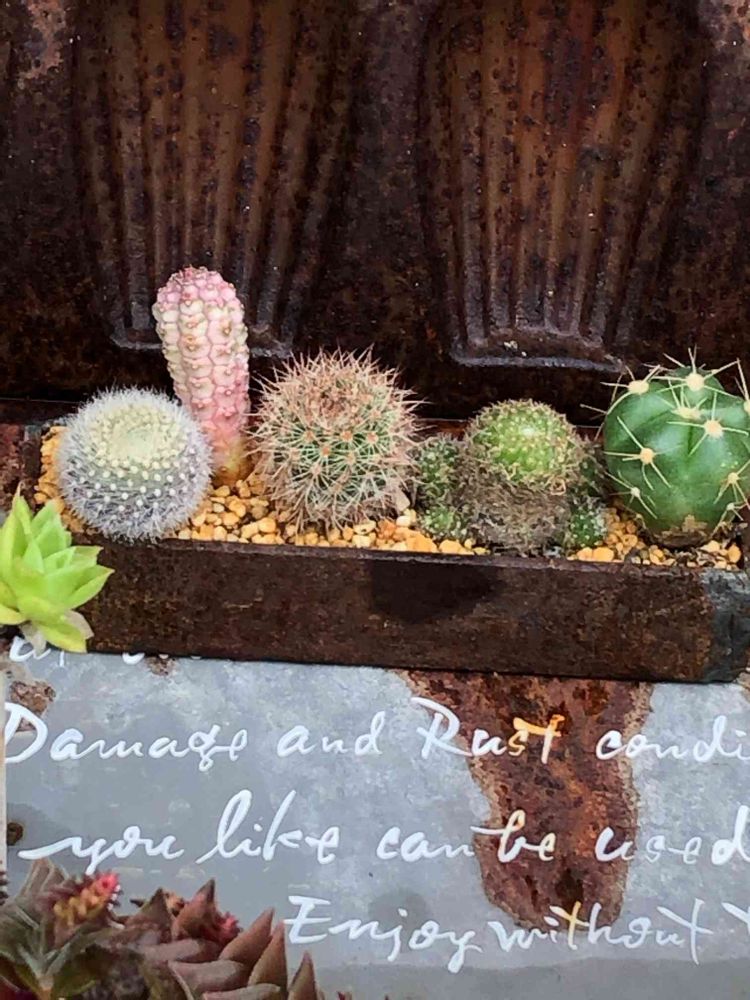サボテンの寄せ植えと鉄の箱 相性ピッタリですねd('∀'*)