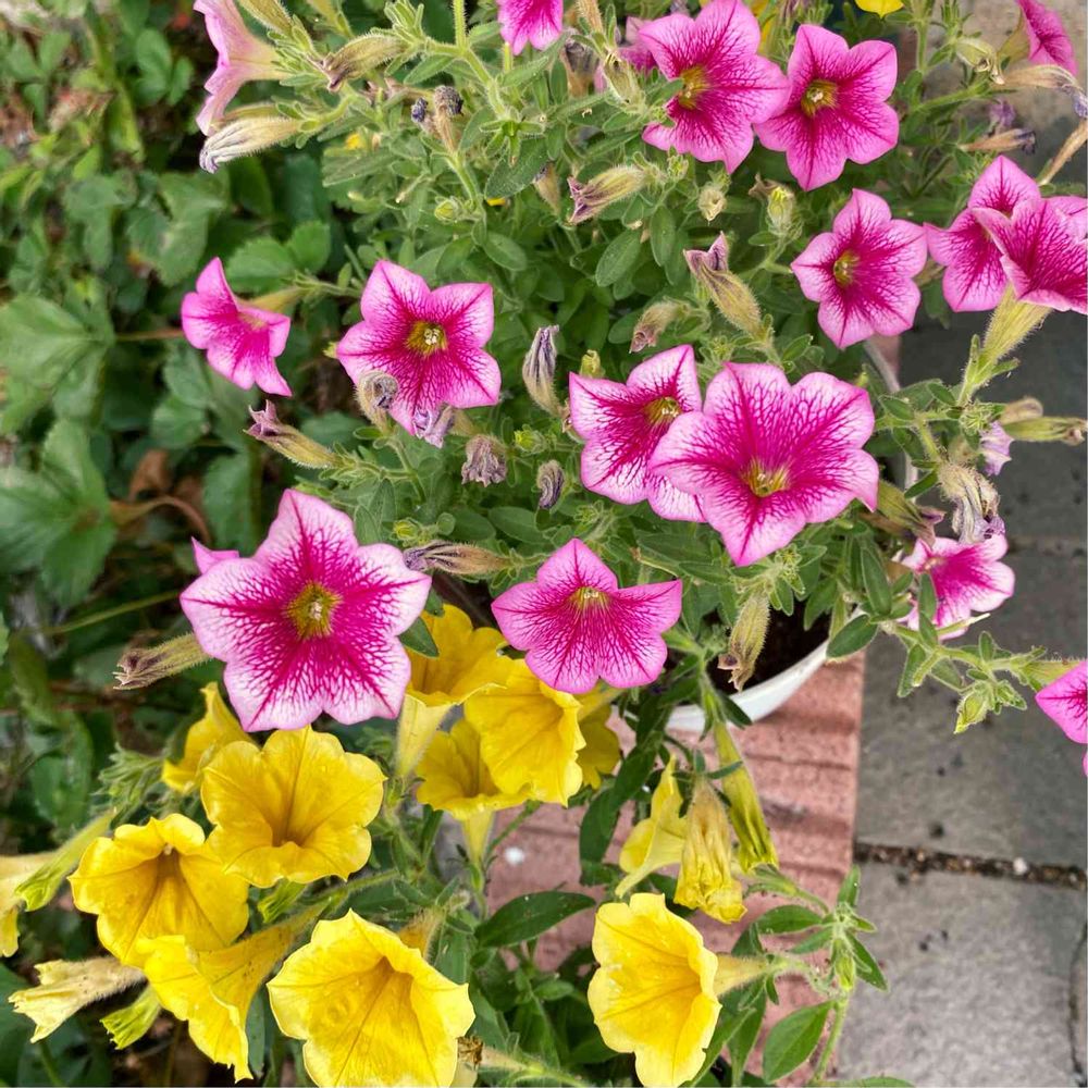 お出かけ先,ペチュニア ギュギュ ピンクアイス,サフィニアブーケ ゴールドの投稿画像