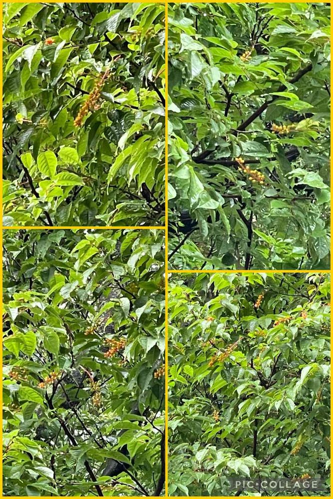 我が家のウワズミザクラの実が黄色色になってきていました。