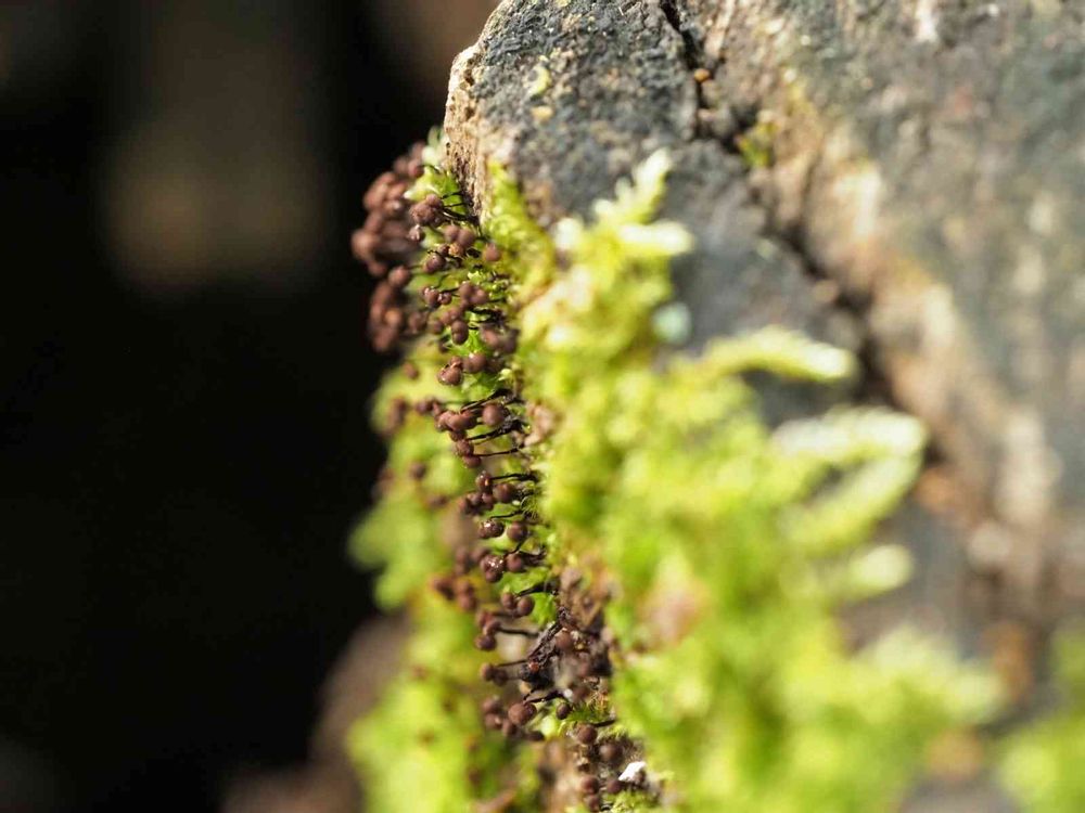 種類によっては見つけやすいものもありますが、写真のようなのは粘菌がいるということは肉眼でわかる程度ですね。見つけたら興奮しますよ😅