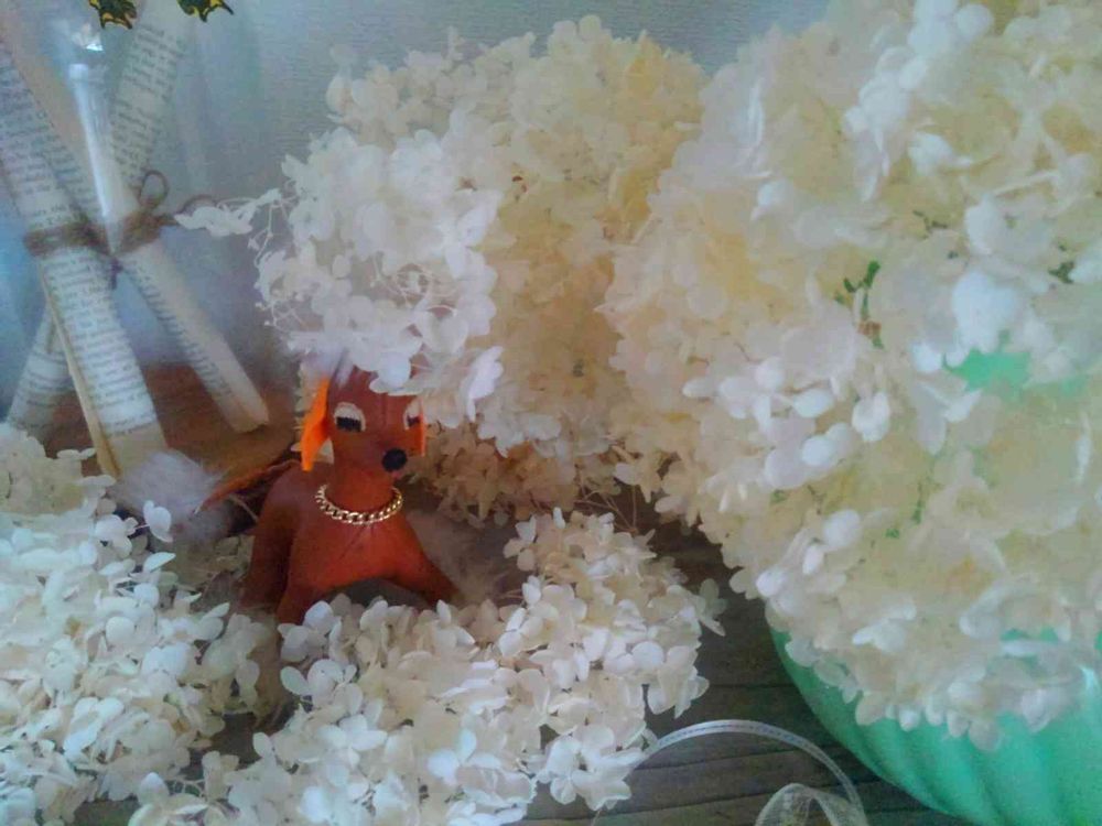 去年咲いたアナベルのドライフラワー茶色くなっちゃったのでせっせと脱色しては洗って干してを職人みたいにやってます