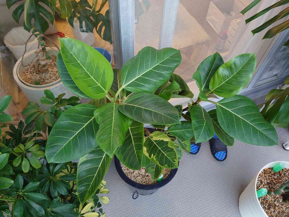 こんばんは。アルテシマゴム、今日から秋までは基本は外管理します。夏は外とご教授頂いたり、昨日行ったプロトリーフ様でも私のと同じサイズのアルテシマゴムが外管理されていましたので。うちは東南向きなので直射日光は午前中だけなので必ずきっと葉焼けはしないはず…です。
