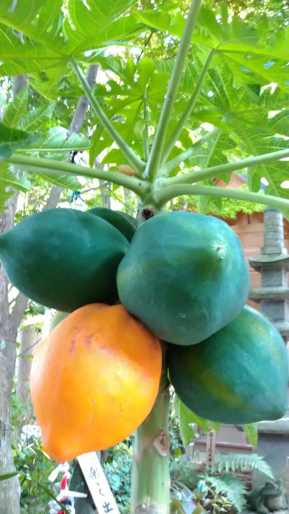 パパイヤの鉢植えがありました。立派な実がなって