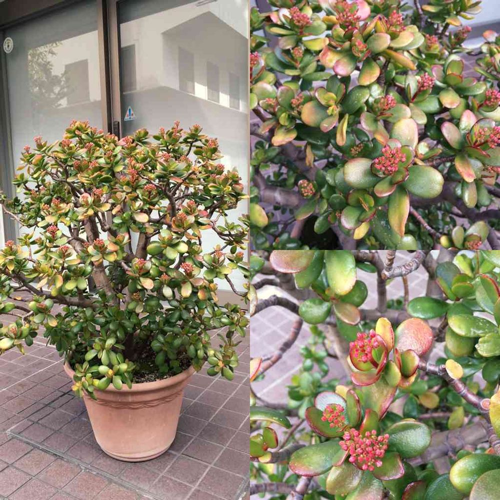 お散歩途中で見つけた金のなる木にお花咲いてる❗️