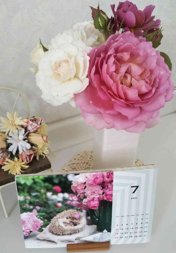 綺麗なバラと🌹ハリネズミ君のカレンダー🗓ひと味違いますね☺️