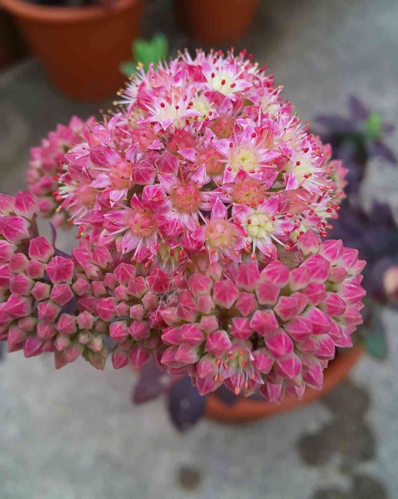 昨年咲かなかったセダムストロベリー&クリームの花が咲きました🙌