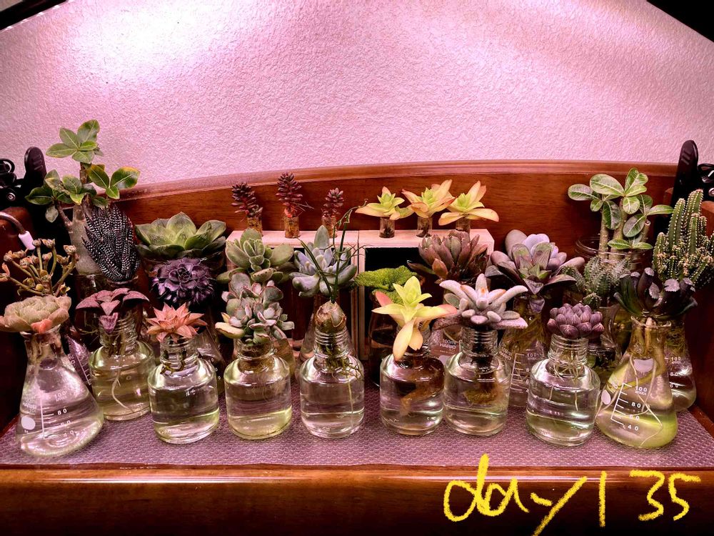 多肉植物の水耕栽培135日目。