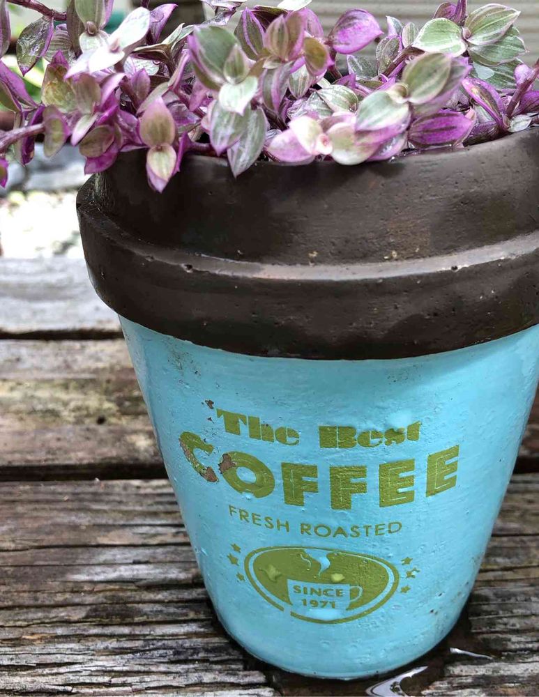 ホムセンで面白い鉢を見つけた。小さすぎて花苗が入らなかったから、勝手に増殖してるカリシアロザートを載せてみました💕