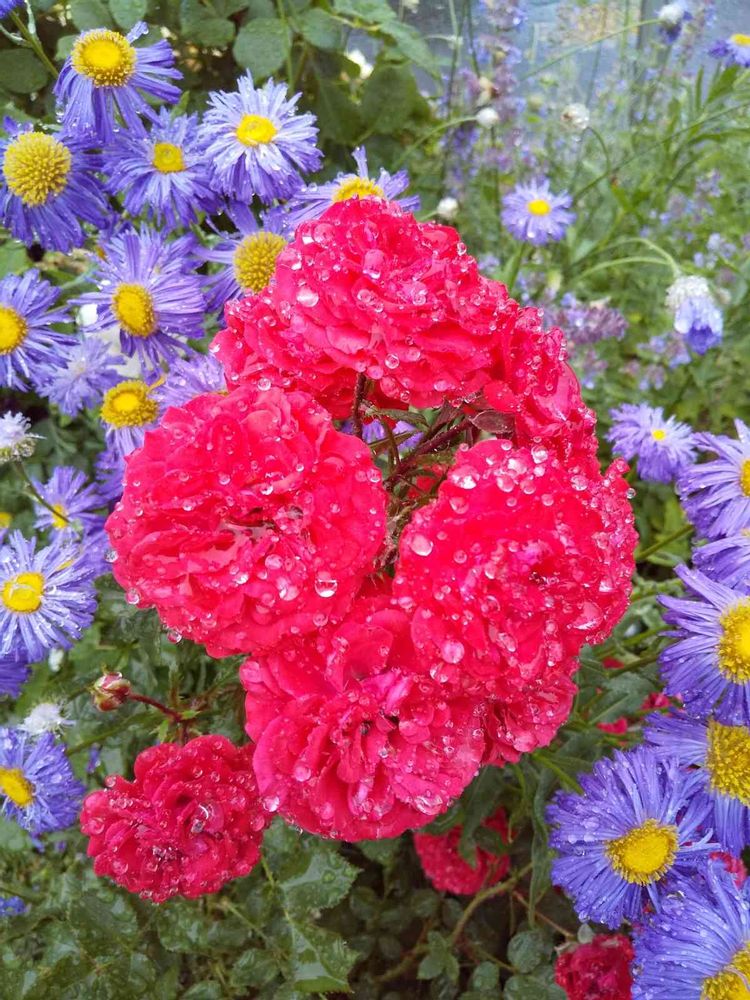 小さな庭,雨に濡れる薔薇,薔薇 ツベルゲンフェー(ミニバラ)の投稿画像