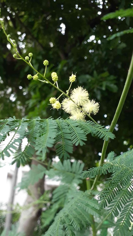 ☔が続いて花壇のお花達もかなりのダメージを受けてるなか昨年の1月にお迎えしたアカシア デアネイが初開花しました😆🎶