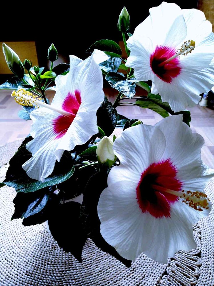 ロシェさん、こんにちは😊 ホワイトハイビスカス、綺麗ですね🥰 私もこんな色合いのハイビスカスが欲しいんですけどなかなか見つからなくて😰