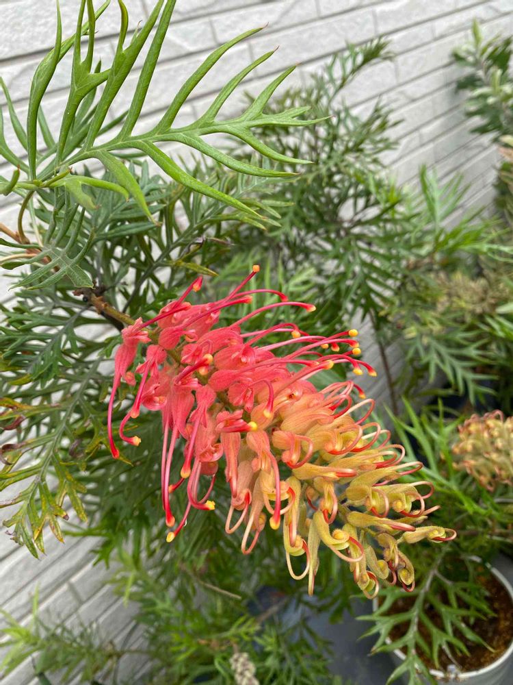 これは【グレビレア】ですね。ユニークな花の形をしてますよね🤗🎶