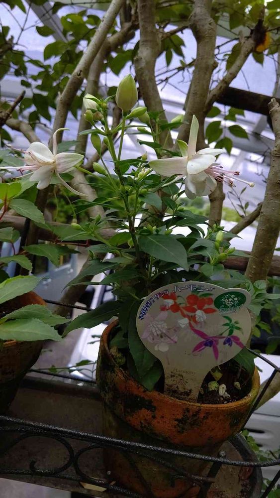 フクシアハーモニーとラベルに何が咲くか⁉️と楽しみにしてたけど、ラベルの写真に無いお花でした。上向きに咲いてるけど可愛い
