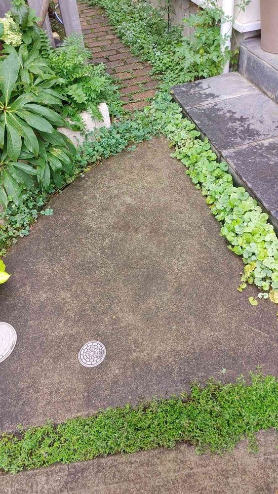 はじめまして、目地に色んなグランドカバーにしても変化があっていいですね!参考にさせてもらいました🍀