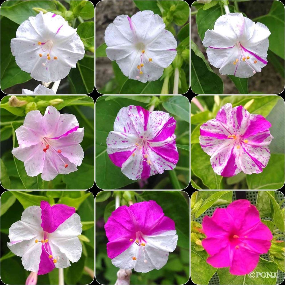 わが家のオシロイバナも、今年は昨年に比べるとチョッと早く咲き始めたのか、お陰さまでこんなコレクションが出来上がりました✨🤗✨