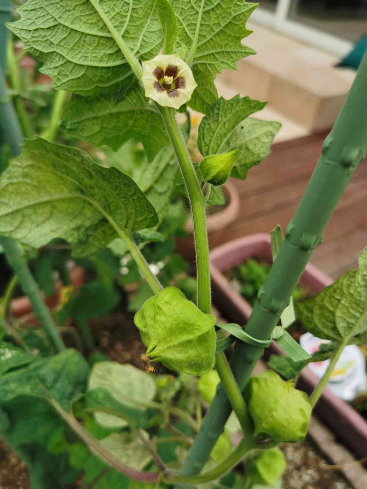 食用ほおずきの花が咲いています💮