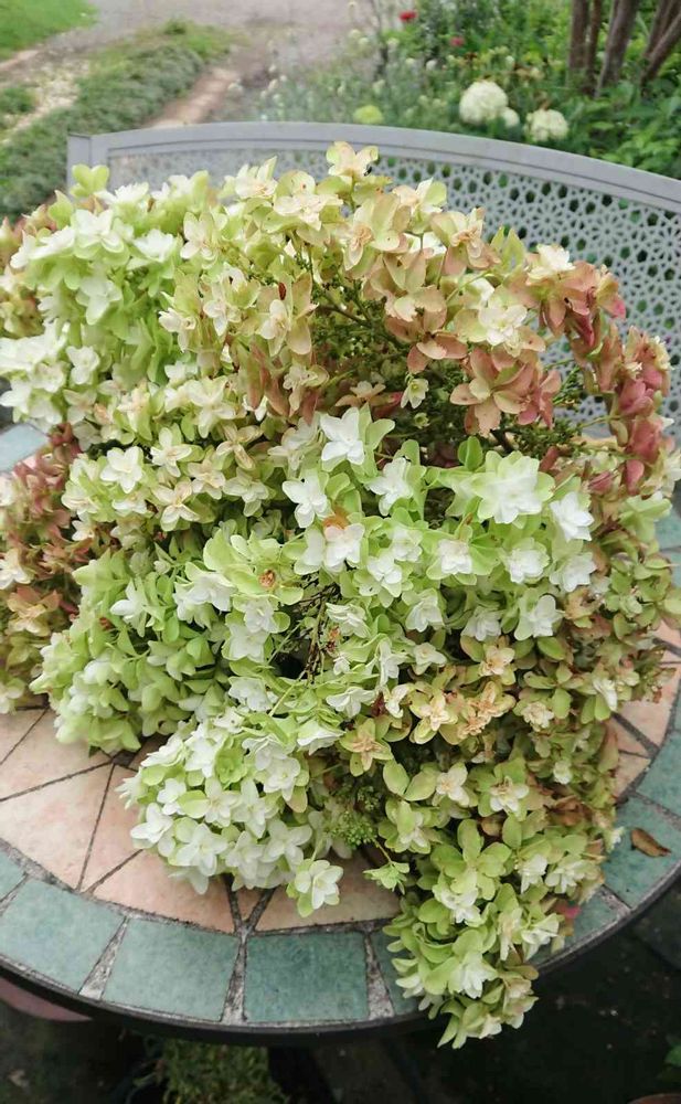 八重咲き カシワバアジサイが乗っていましたね💮🌿😊💕