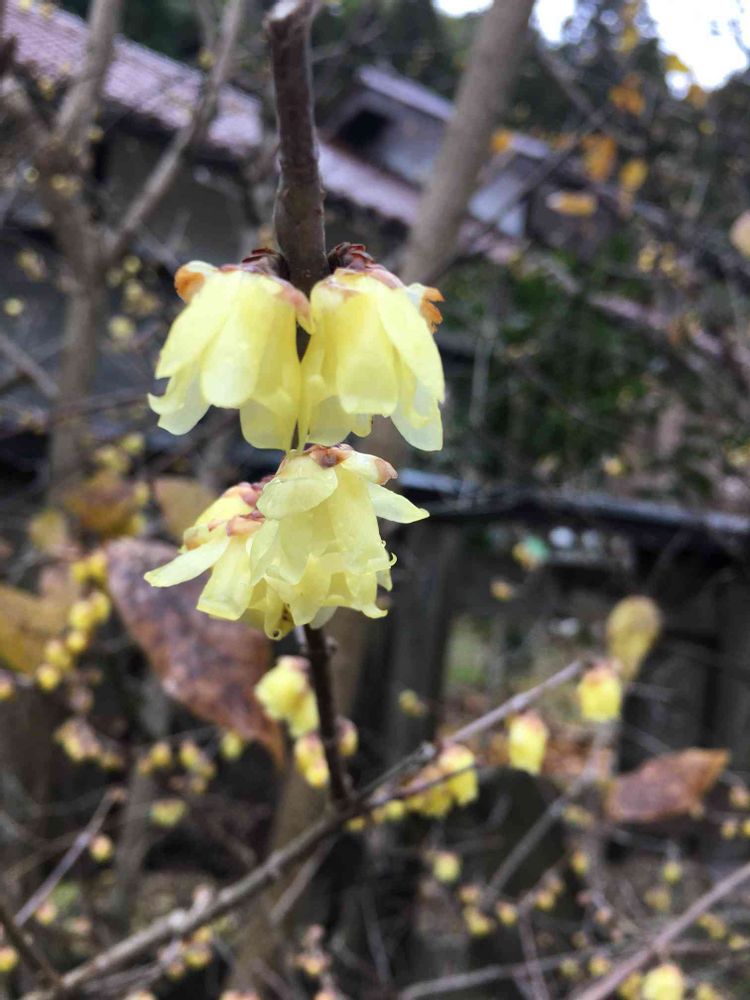 石見銀山の喫茶やまぶきの近くに咲いているロウバイ