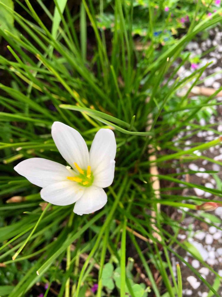 運河散歩、今年初のゼラフィンスの花、もしかしたら昨日も咲いていて見逃してたかもですが、雨☔️の中でも清々しい😚