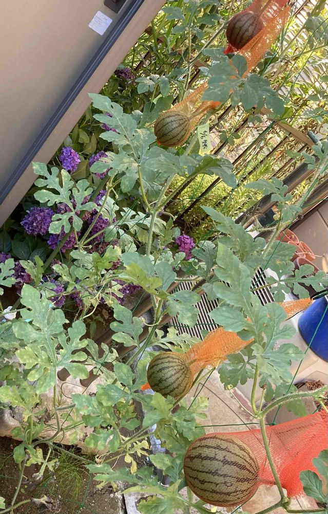 スイカ🍉の空中✈️栽培沢山なってうらやましい!