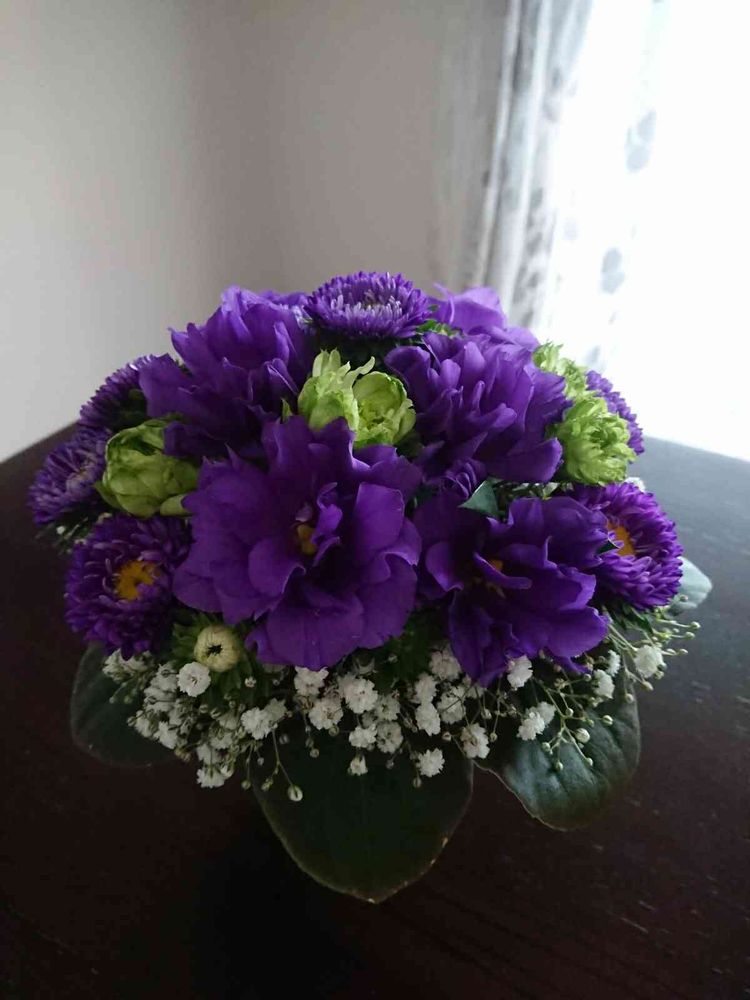 よし、かすみ草を使って何か作ろうと出かけました。そしたらありました!いつもの花屋さんに、入荷したてのかすみ草が✨ 夜空をイメージして深い紫のリシアンサスもチョイス。