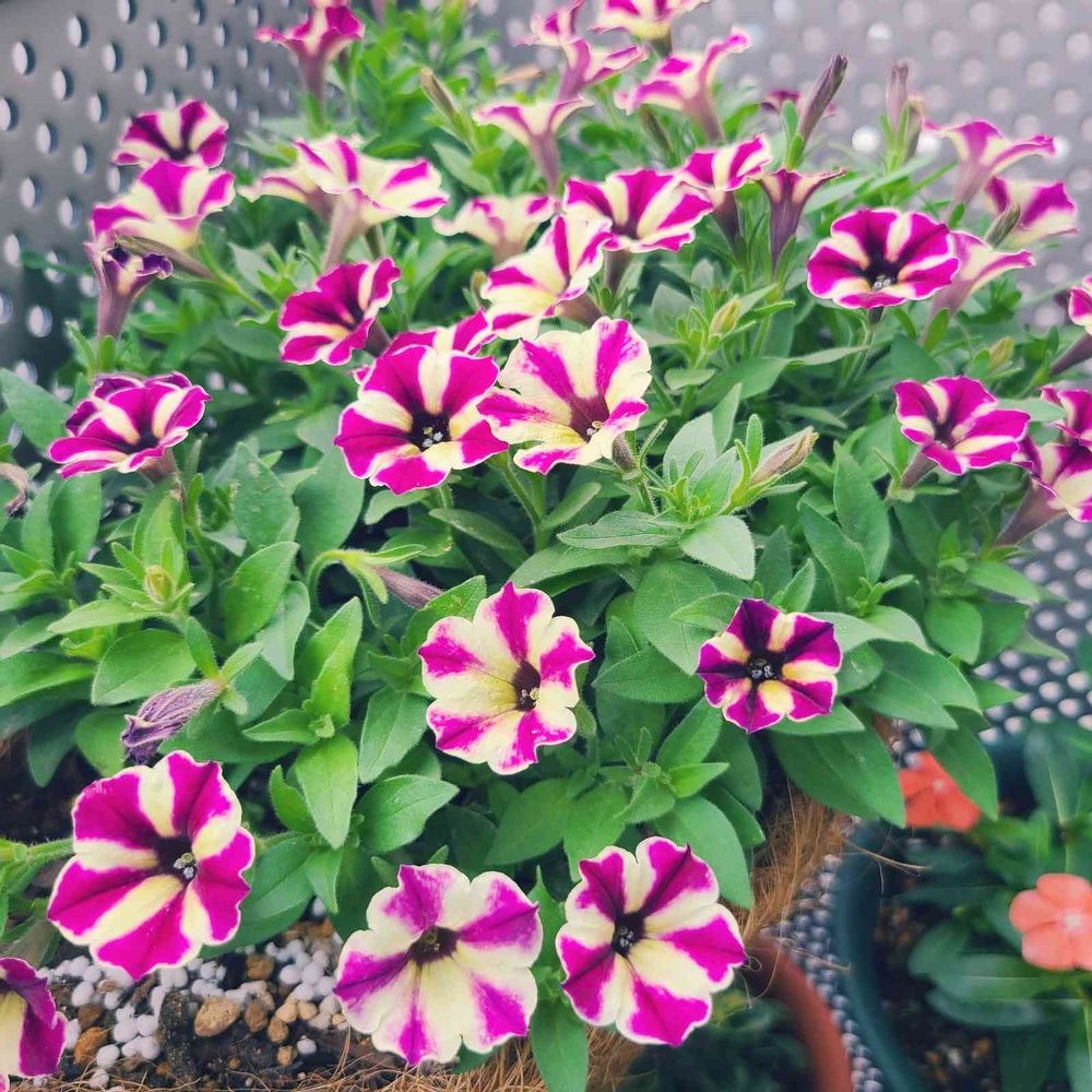 バルコニー/ベランダ,ニチニチソウ,スーパーチュニアラズベリーチーズの投稿画像