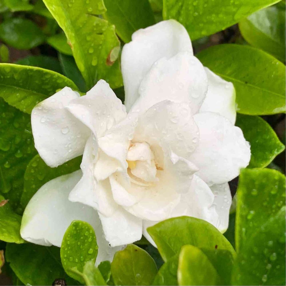 雨に濡れた、まっ白のクチナシ泣いている風情を感じます🌼🌿