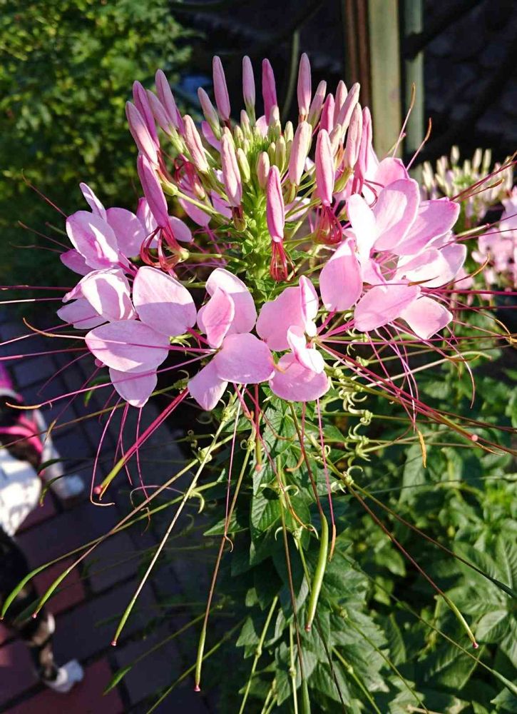 ジュリアーノさんのクレオメ、朝日を浴びて輝いて綺麗ですね😊✨