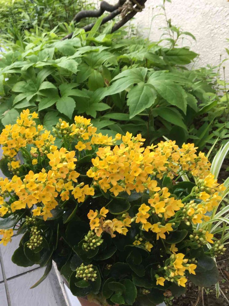 黄色のカランコエは我が家の頂き物カランコエと同じかしら〜?