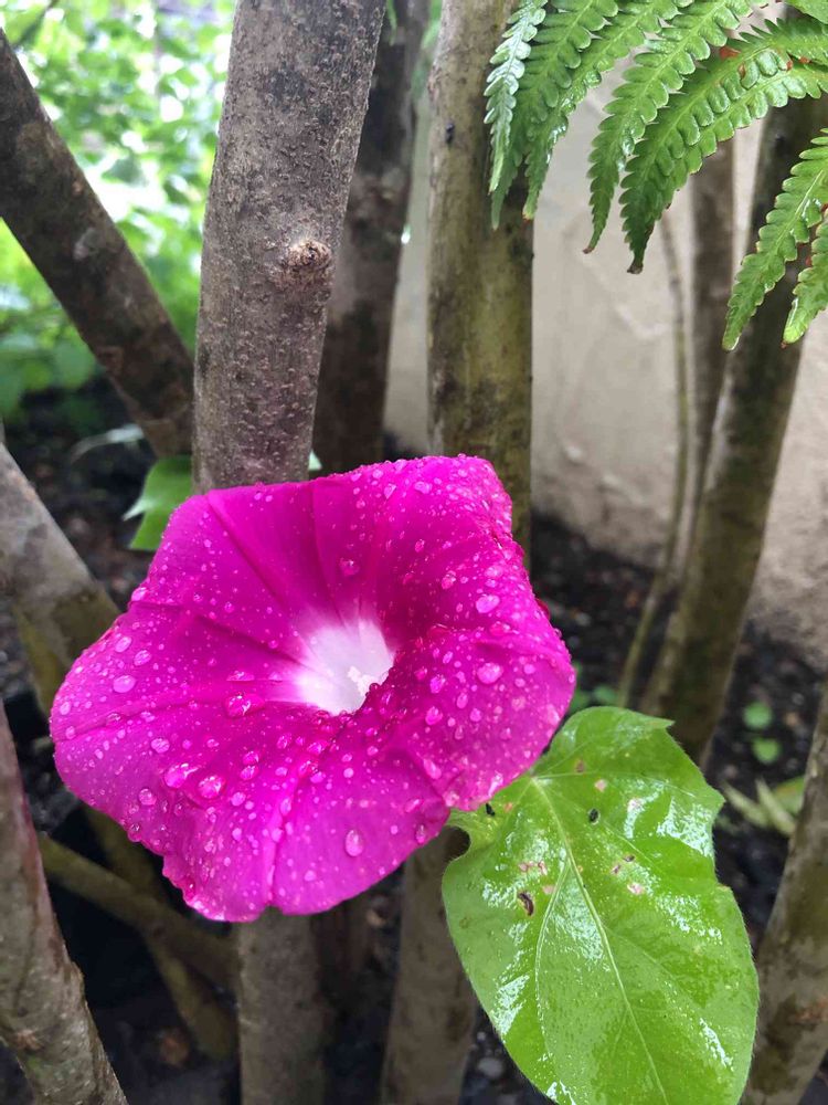 ポット苗を鉢植え&支柱しなくちゃと思ってたけど、花友の投稿から、木に絡ませるのもありなんだ〜と学び、実践。