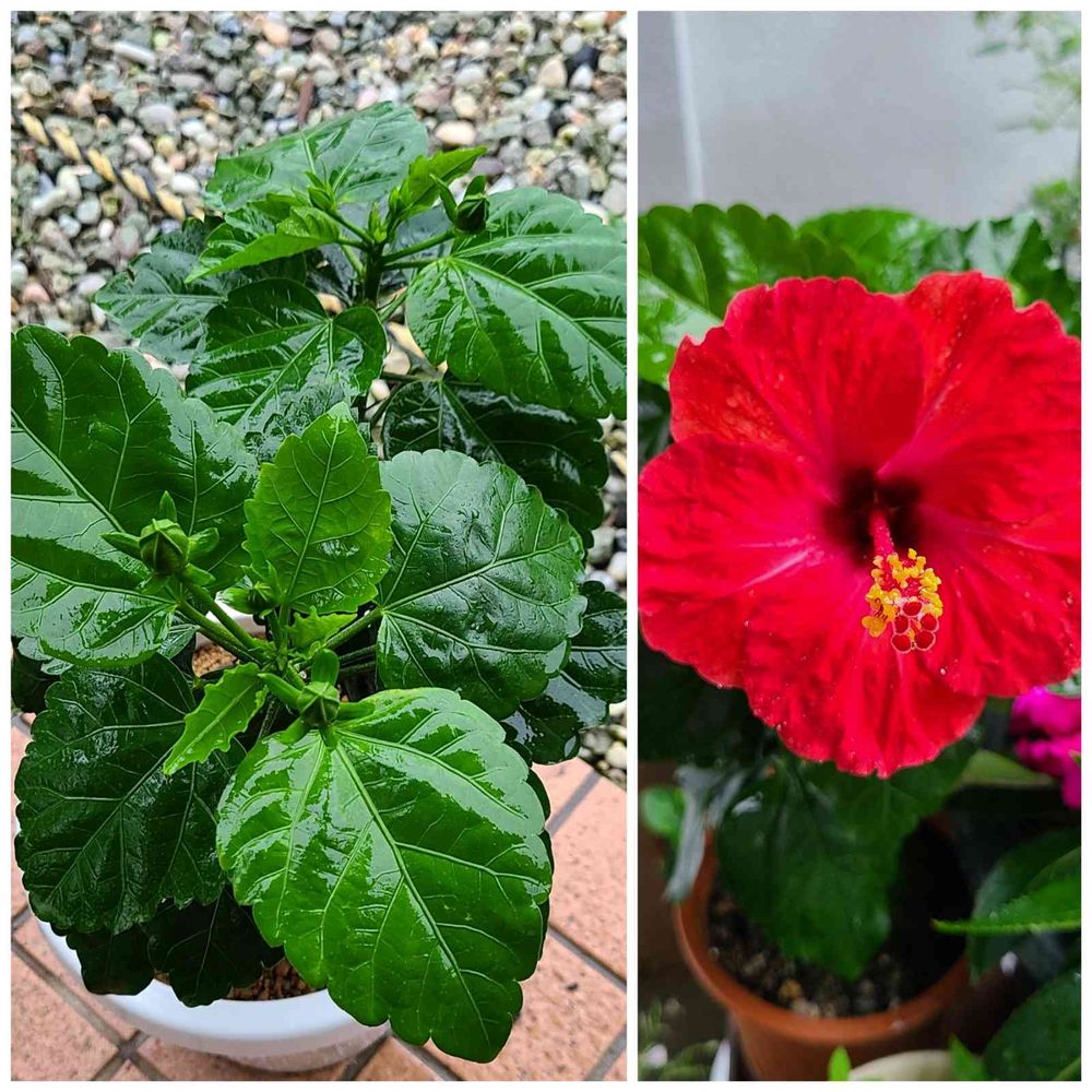 気になっていたハイビスカスレッドの鉢増し植え替えは、完了しました。