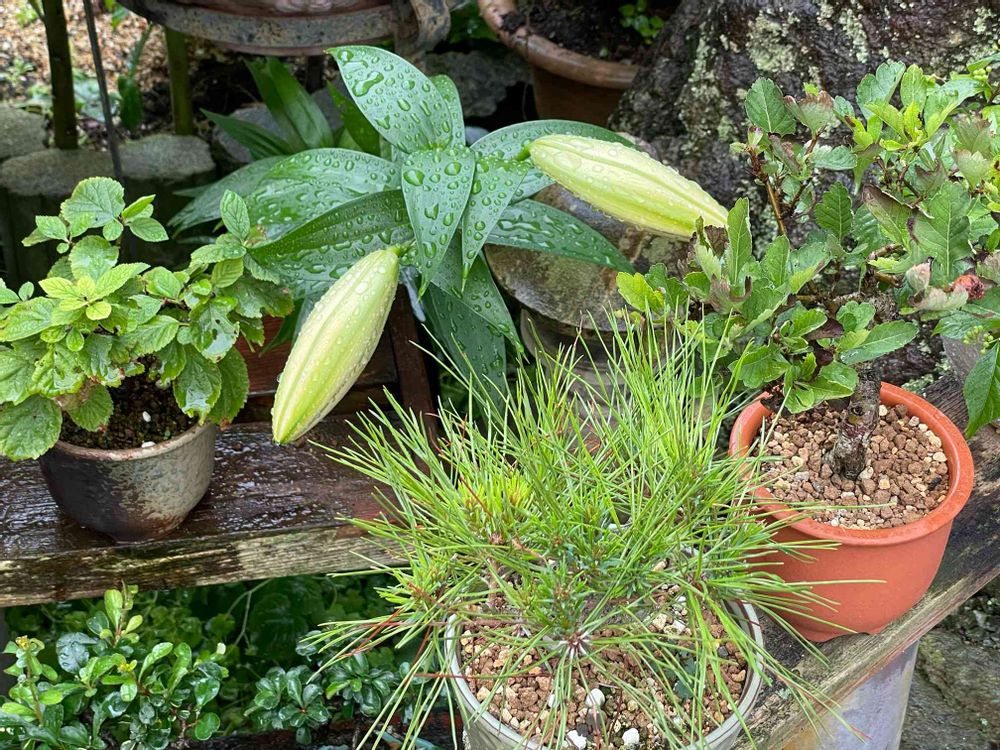 父親の盆栽ゾーンから百合が登場しました(⍢︎)