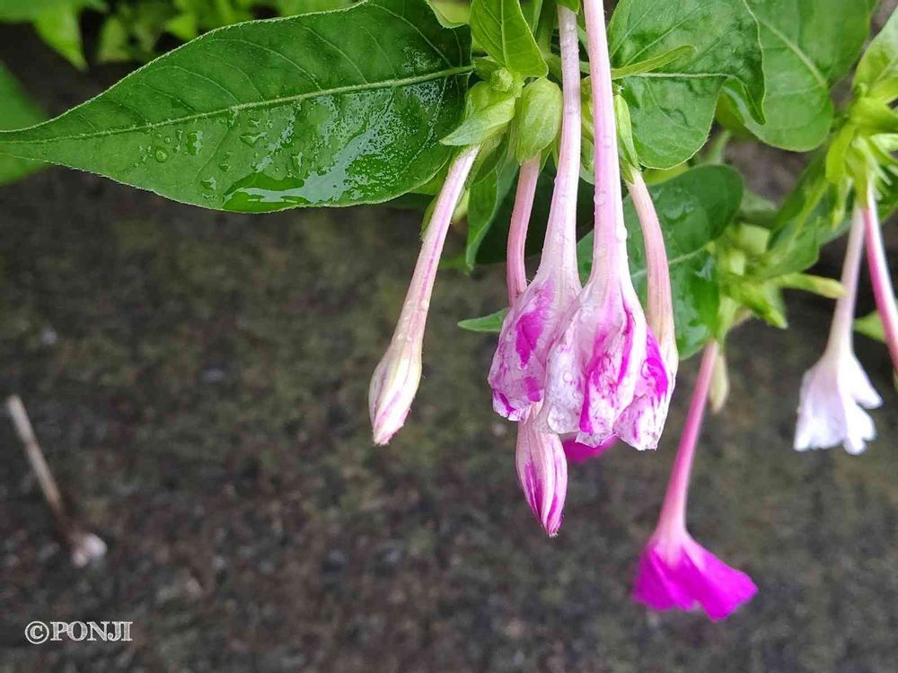 オシロイバナも雨に打たれてご覧の通り(´・ω・`) ショボーン💧