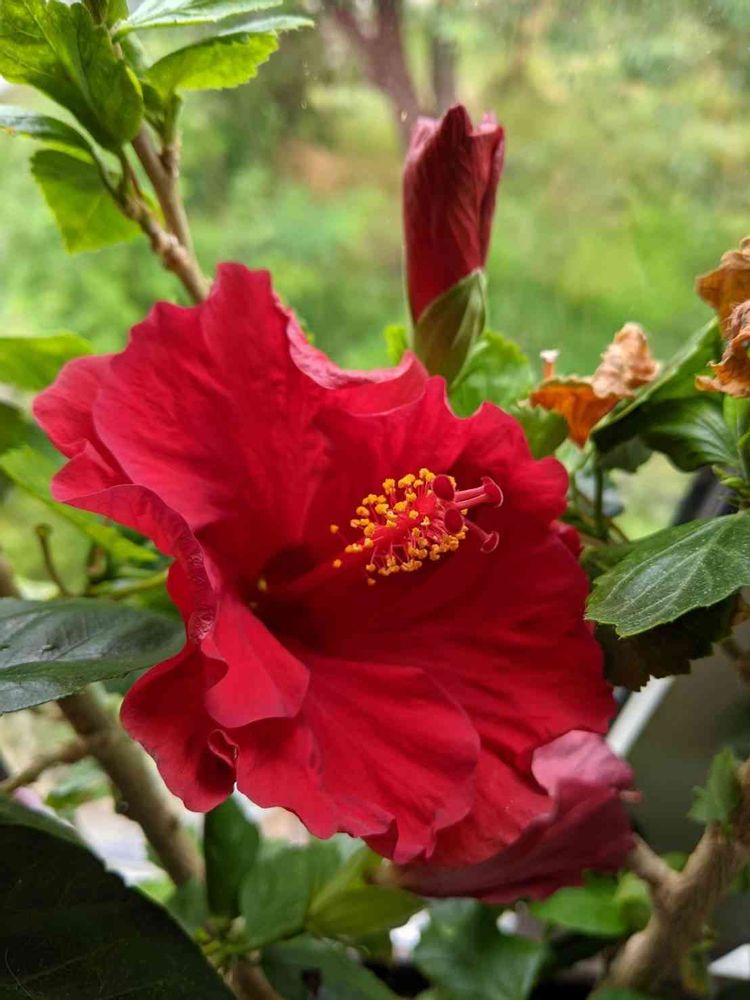 窓辺,ミニハイビスカス ハワイアンベイビー 赤,今日のハイビスカスの投稿画像